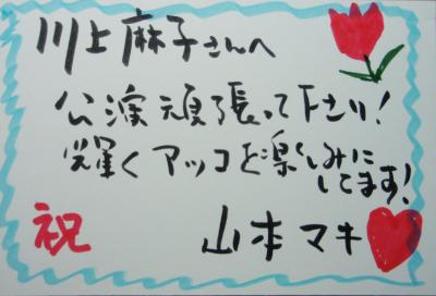 ホームページでお名前とメッセージをご紹介します。ご自宅にハガキ大のカードをお送りしますので、そこに画像のように自由にメッセージをお書き頂き当方迄送り返して下さい。